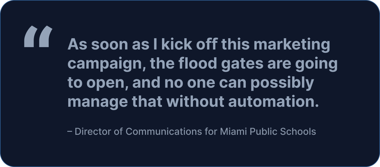 The core persona was overwhelmed and not a marketing expert, so the primary imperative was minimizing effort. This meant automatic lead/guardian/student record creation, smart defaults, workflow automation, and guided prompts that tell schools what to do next.